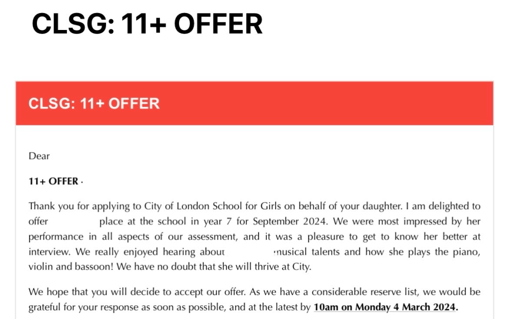 City of London School for Girls – Accepted