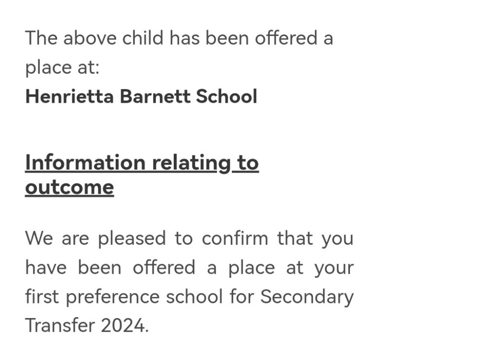 Henrietta Barnett School – Accepted