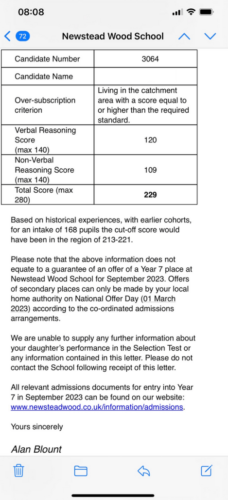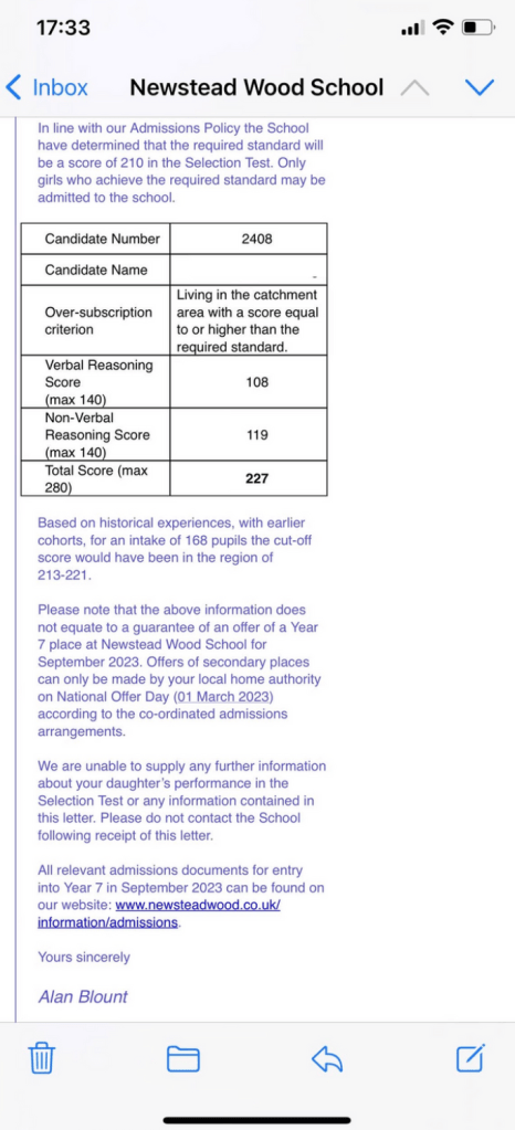 Beths Grammar (12+) – Accepted
