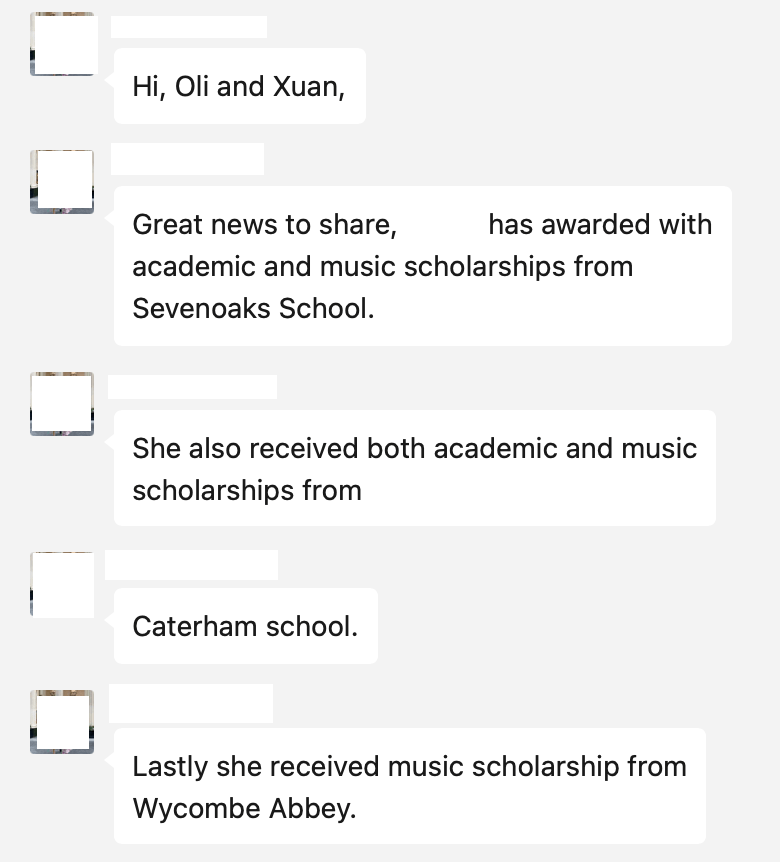 Sevenoaks (scholarship), Caterham (scholarship) + Wycombe Abbey (scholarship)